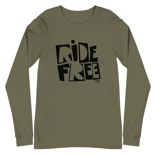 Unisex Long Sleeve Tee, Black Ride Free Logo