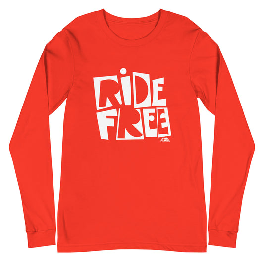 Unisex Long Sleeve Tee, White Ride Free Logo